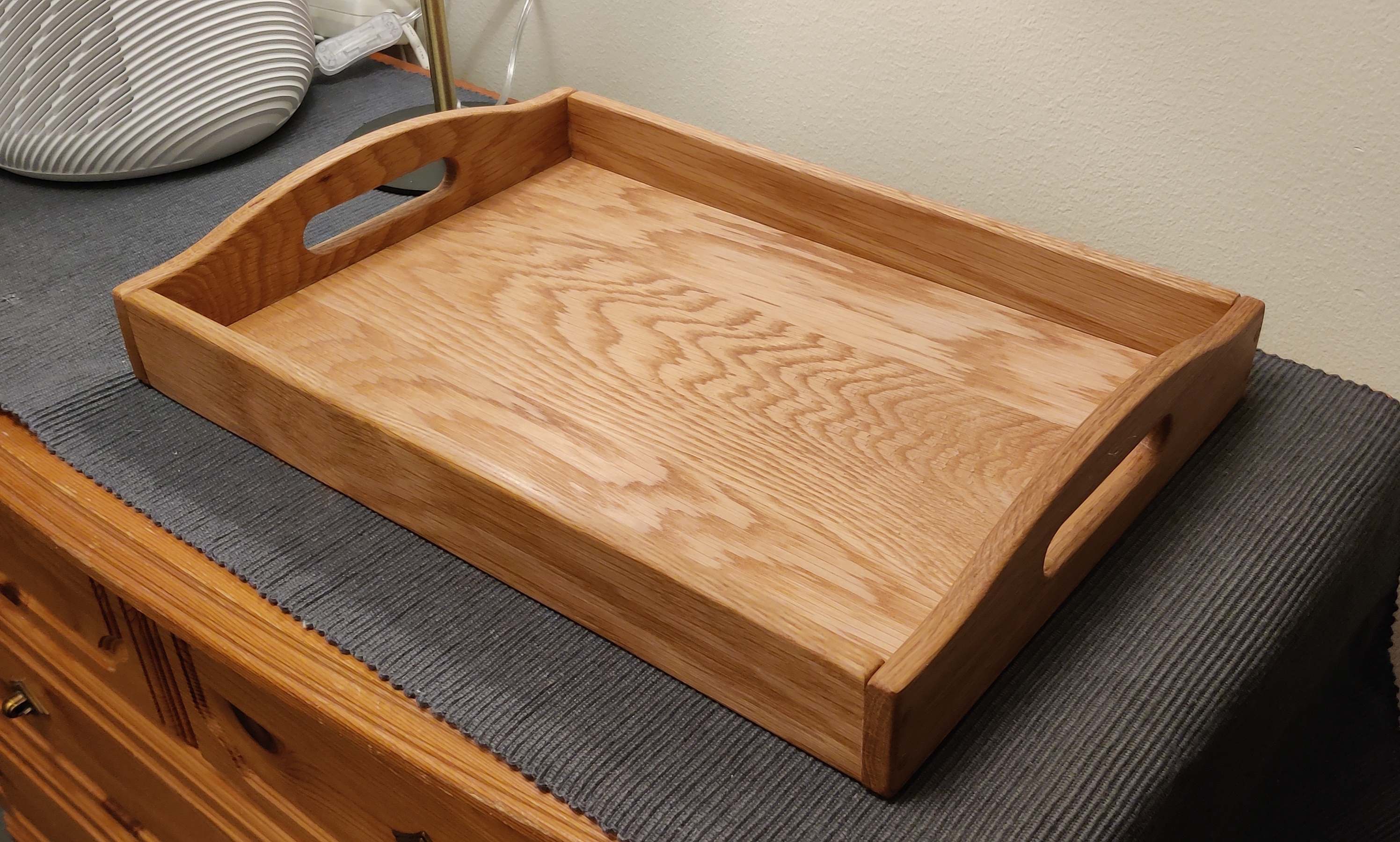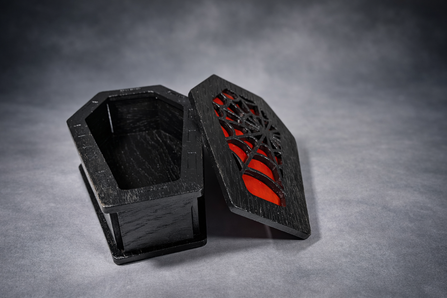 Ask tillverkad i ek för att lägga kortlekar i.